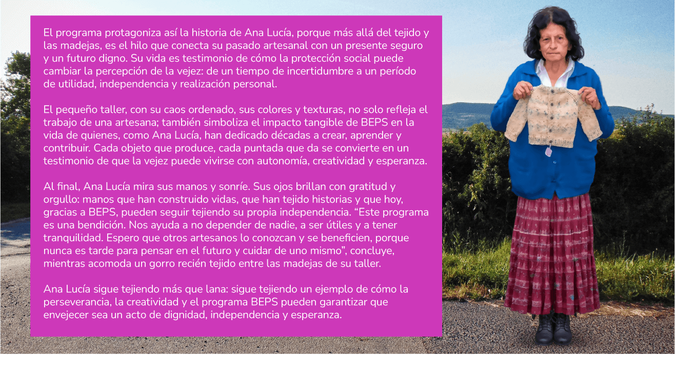 Además de la estabilidad económica, BEPS le ha dado a Ana Lucía un motivo para seguir creando. Cada gorro, saco o chaleco que hace ahora tiene un valor doble: el artístico y el que le permite sostener su vida con independencia. La artesanía, que alguna vez fue solo un refugio, se ha convertido en un símbolo de resiliencia, creatividad y planificación. “Es importante que los artesanos sepan que BEPS les sirve, aunque parezca poco, todo suma y da seguridad”, afirma, invitando a otros a inscribirse y a planear su vejez con responsabilidad.